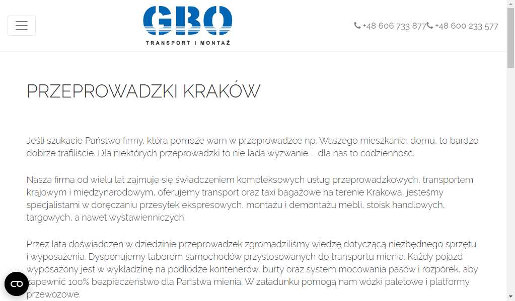 Firma GBO Michał Ogiński oferuje profesjonalne transport mebli na terenie województwa małopolskiego. Dzięki doświadczonej ekipie oraz nowoczesnym samochodom dostawczym zapewniamy szybki transport mebli w każdej sytuacji. Naszym priorytetem jest terminowość i indywidualne podejście do każdego zlecenia. Jeśli szukasz profesjonalnego transportu
